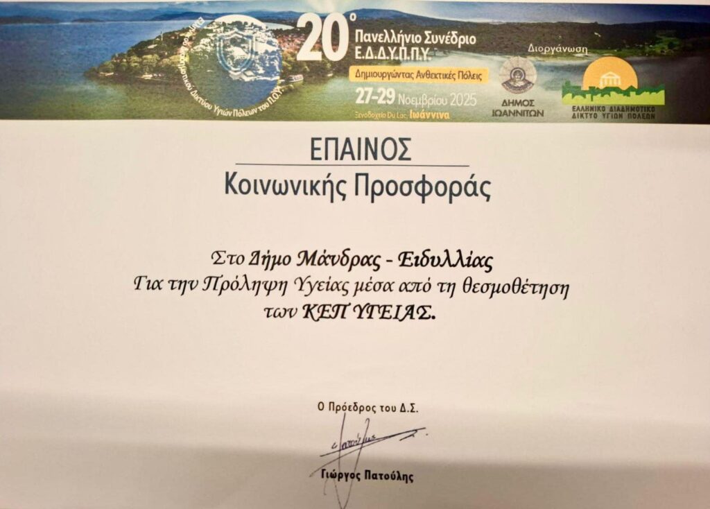 Ευχαριστώ θερμά το ΕΔΔΥΠΠΥ για την τιμή, αλλά και όλους τους ανθρώπους του Δήμου που δουλεύουν καθημερινά για να λειτουργούν αυτές οι δομές με συνέπεια και επαγγελματισμό.