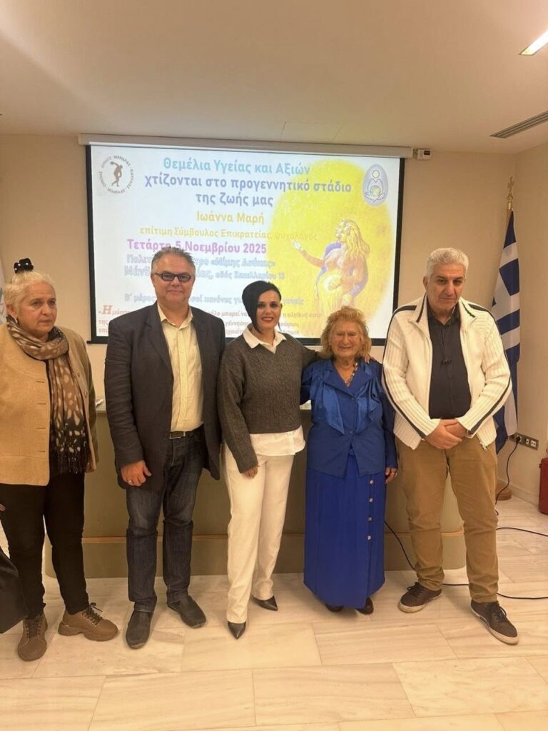 Με εισηγήτρια την κα Ιωάννα Μαρή, Επίτιμη Σύμβουλο Επικρατείας, Ψυχολόγο και Πρόεδρο της Ελληνικής Εταιρείας Προγεννητικής Αγωγής, η εκδήλωση προσέφερε ένα σπάνιο μείγμα επιστημονικής γνώσης, κοινωνικής ευαισθησίας και οράματος για το μέλλον.